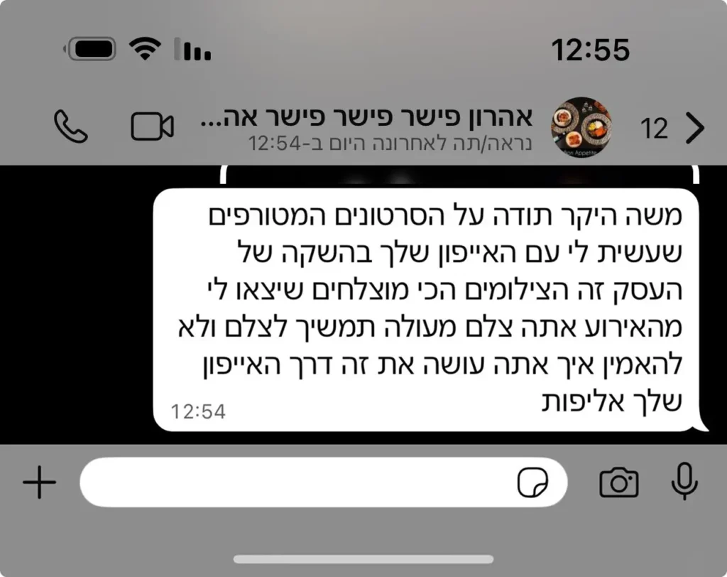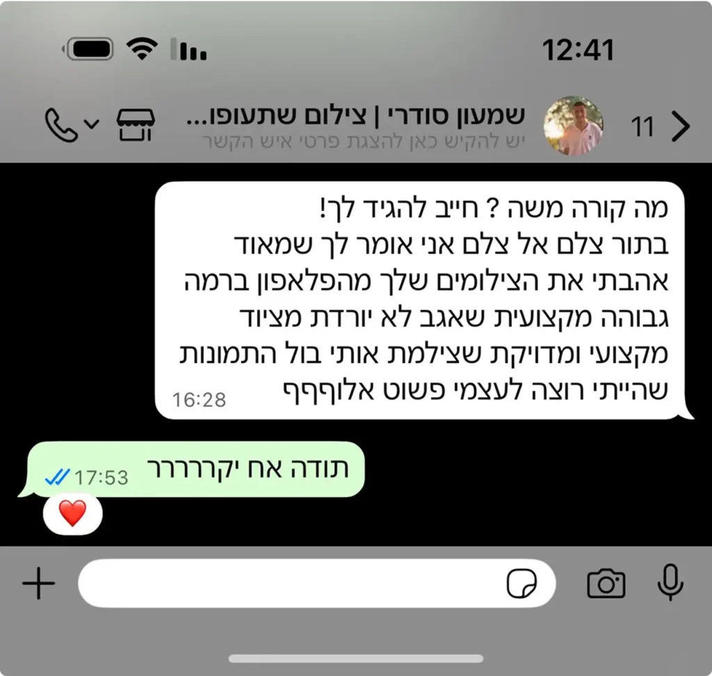 צלם, עורך ויוצר תוכן כעשור. התחלתי כעוזר לצלמים וצברתי ניסיון בכל סוגי הצילום – מאירועי ענק ותדמית ועד קליפים ואירועים רבי מצלמות, אירועים היסטוריים בארץ ובחול. כשהבנתי שאם נגמרה לי הסוללה בחופה אני צריך לשלוף איפון במקום ללכת להביא סוללה ולאבד את הזמן הבנתי שגם אתם עם מה שיש לכם ביד יכולים לייצר תוצאה מקצועית לא פחות.